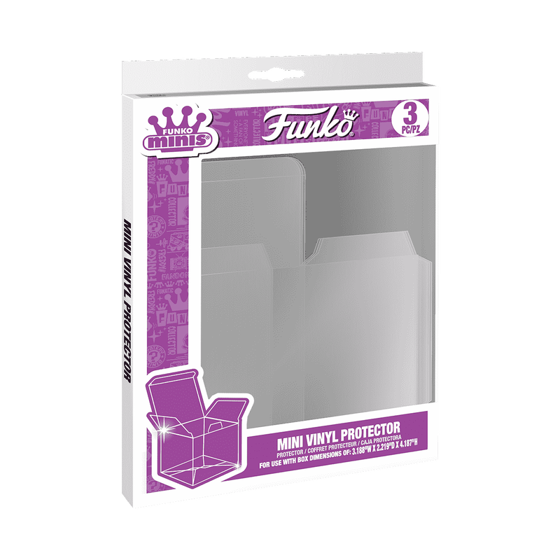 Looking for a way to protect your Funko Mini Vinyl Figures? Cover all corners of your Minis’ packaging with this 3-pack of Mini Vinyl Figure Protectors. They are foldable for easy storage or transportation and fit the standard Funko Minis boxes (3.188” width x 2.219” depth x 4.187” height). Made of acid-free PET Plastic, these protective covers are .3 MM thick. The clear plastic allows you to still see every side of your collectible’s packaging.