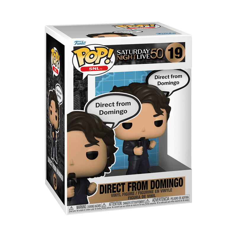 He came all this way, so give a warm welcome to POP! Domingo! Featuring a “Direct from Domingo” speech bubble, this suave charmer is sure to form a strong connection with your collection! Celebrate the 50th Anniversary of Saturday Night Live™ by making this comical character the next addition to your SNL™ lineup! Vinyl figure is approximately 4.6 in (11.7 cm) tall.