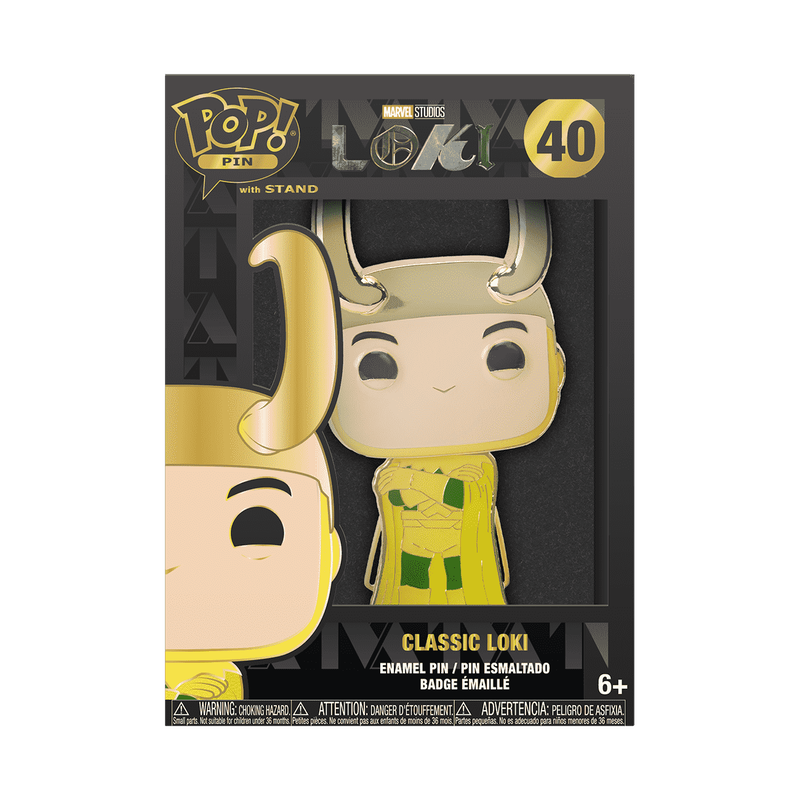 Loki’s plans took an unexpected turn when he stole the Tesseract. Bring the adventure home from Marvel Studios’ Loki television show with Pop! Pin Classic Loki. Complete your Marvel lineup by adding this god of mischief to your collection. This Pop! Pin features enamel fill, 3D molded metal, gold-colored hardware, and a built-in stand. Enamel pin is approximately 4 in (10.2 cm) tall.