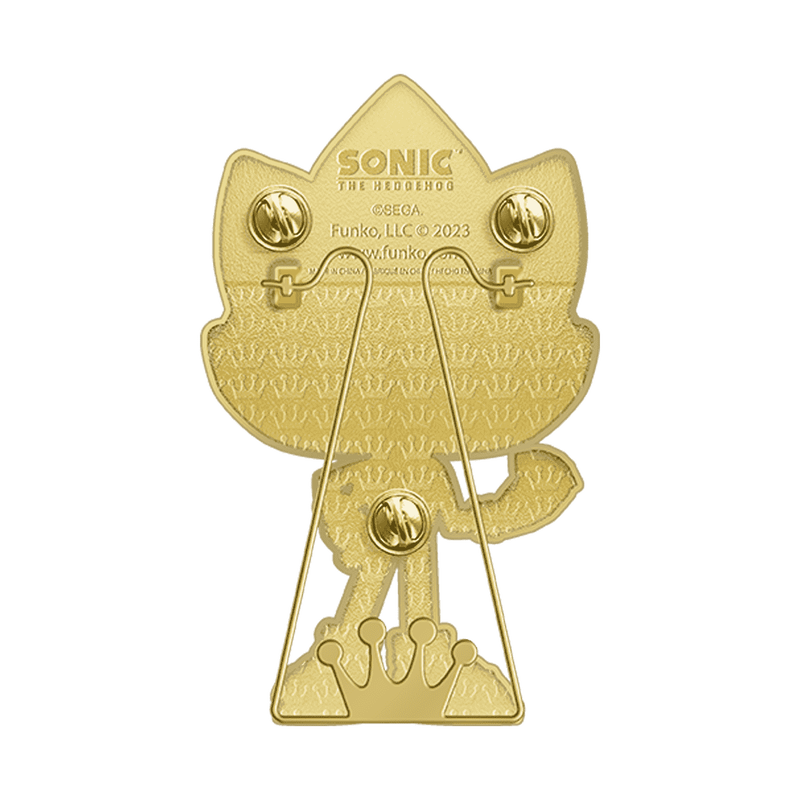 Level up your Sonic the Hedgehog™ collection with Loungefly Pop! Pin Super Sonic™. This Pop! Pin features glow-in-the-dark enamel fill, gold-colored hardware, and a built-in stand. Enamel pin is approximately 4 in (10.2 cm) tall.