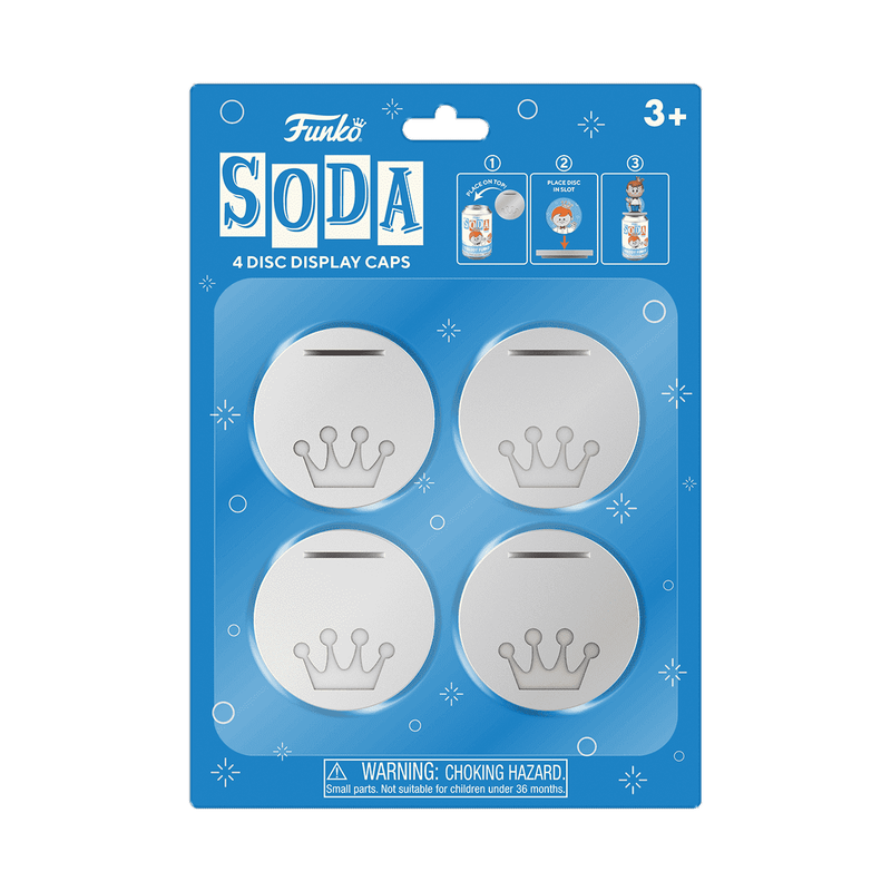 Refresh your Funko SODA collection with the Disc Display Caps set. These caps carefully snap onto the top of your SODA can packaging and have a slot to hold the character discs on top! The neat way to show off the disc art alongside the SODA figures and packaging.