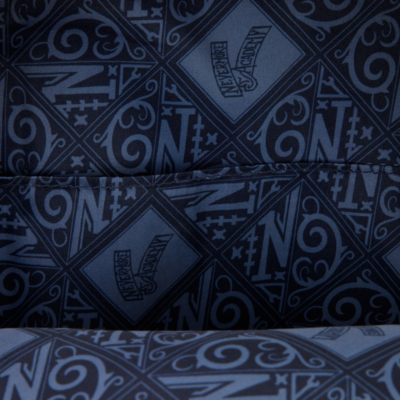 This mini backpack features everyone’s fav: Wednesday! She appears on the front heart-shaped pocket. All over the bag, she’s surrounded by embossed and embroidered floral details. There are even 3D roses on the front!