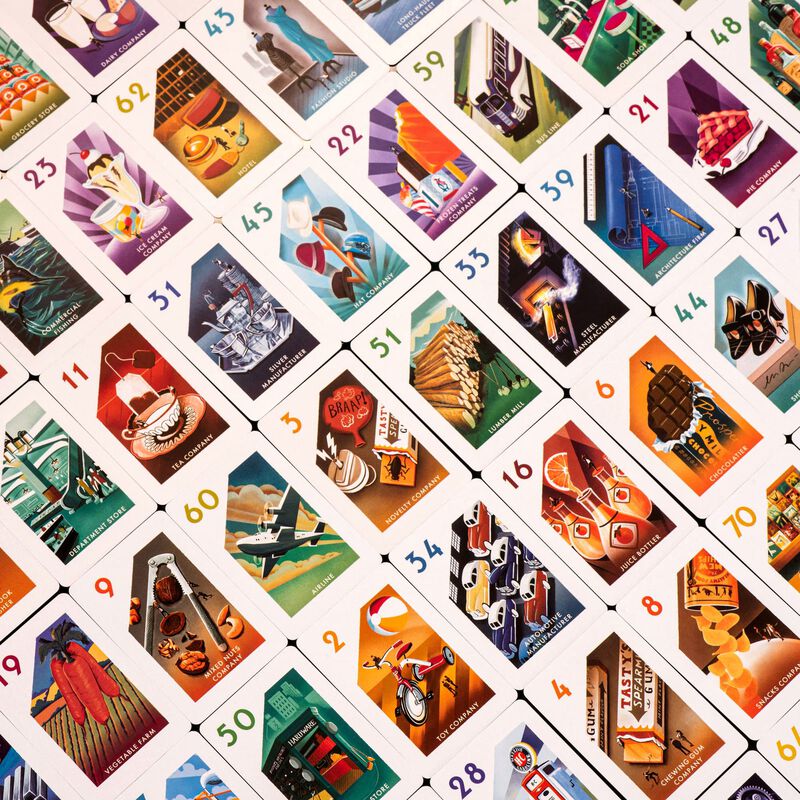 - 72 unique industry cards featuring gorgeous vintage style illustrations.