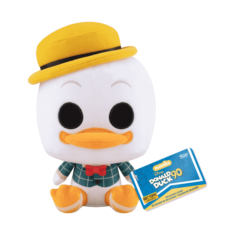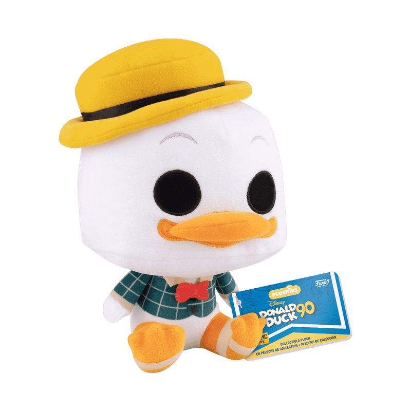 “Boy, oh boy!” Funko Plush Donald Duck has landed, and this dapper bird has dressed in his finest attire! Celebrate the 90th Anniversary of Donald Duck by welcoming this cuddly, feathered friend into your Disney collection. Collectible plush is approximately 7 in (17.8 cm) tall.