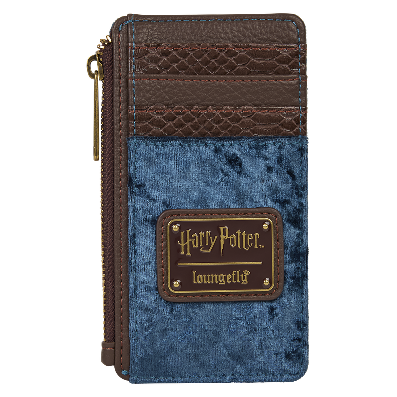 On the front, you’ll find the Ravenclaw banner, complete with satin, embroidery, and velvet detail. Turn it around to find four card slots and a zippered compartment.