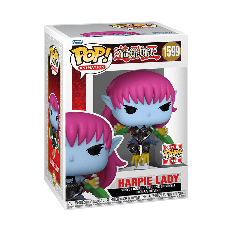 Duel in comfort and style with the Yu-Gi-Oh! Harpie Lady Pop! & Tee set! The front of this black crewneck tee features Pop! art of Harpie Lady in her black armor beneath the Yu-Gi-Oh! logo. This short-sleeved tee also comes with a matching Pop! Harpie Lady! Show off your Yi-Gi-Oh! pride in your collection and on the go when you add this Pop! & Tee set to your wardrobe! Vinyl figure is approximately 4.1 in (10.4 cm) tall.