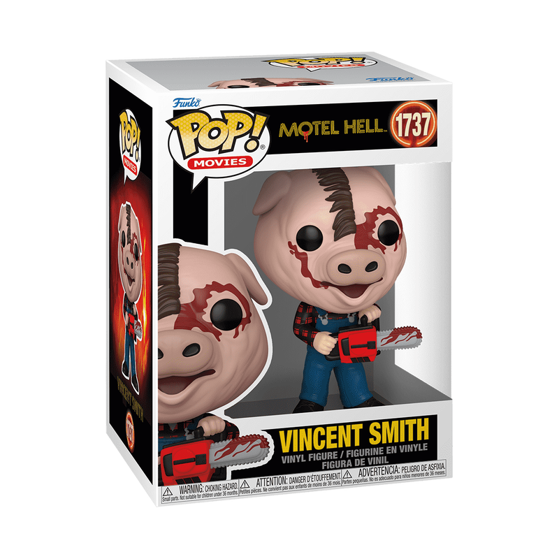 Stay a while at the Motel Hello! POP! Vincent Smith is eager to expand his garden to your Motel Hell™ lineup. This terrifying host is sure to make your POP! Movies collection squeal! Vinyl figure is approximately 4.05 in (10.3 cm) tall.